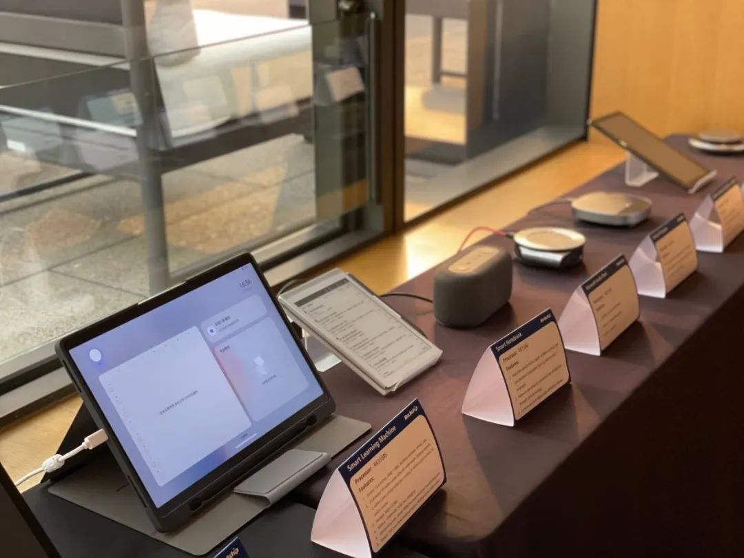 在消费电子展区,展示了瑞芯微在智慧办公、智慧教育、智慧家居的芯片应用,展示了搭载新发布的AIoT通用算力平台芯片RK3562的平板电脑,该芯片采用4核A53+G52架构,内置1TOPS算力,拥有4K解码能力,可满足众多AI智能硬件产品。