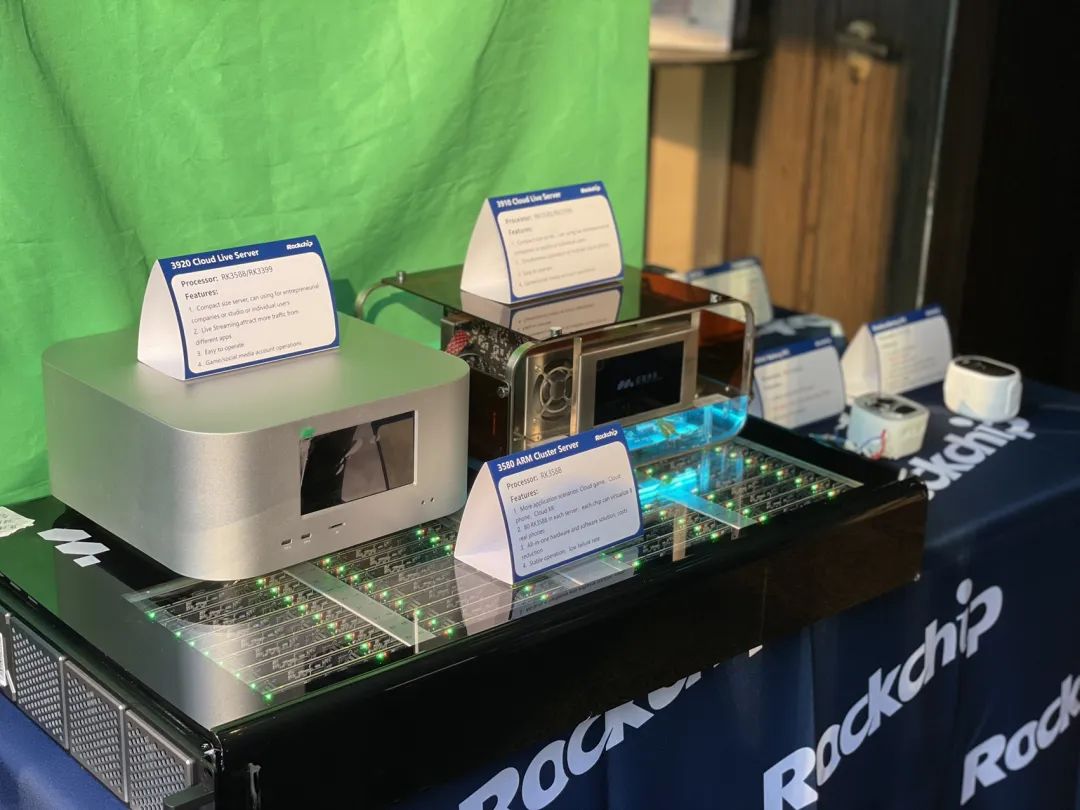 还展示了搭载新多媒体应用芯片RK3528的系列产品,适用于IPTV/OTT盒子、云终端、融合类产品,是高性能低功耗的4K播放器,解码能力最高支持到8K,同时也支持了AVS2和HDR VIVID标准,U3和PCIE高速接口也提供了更多的扩展性。