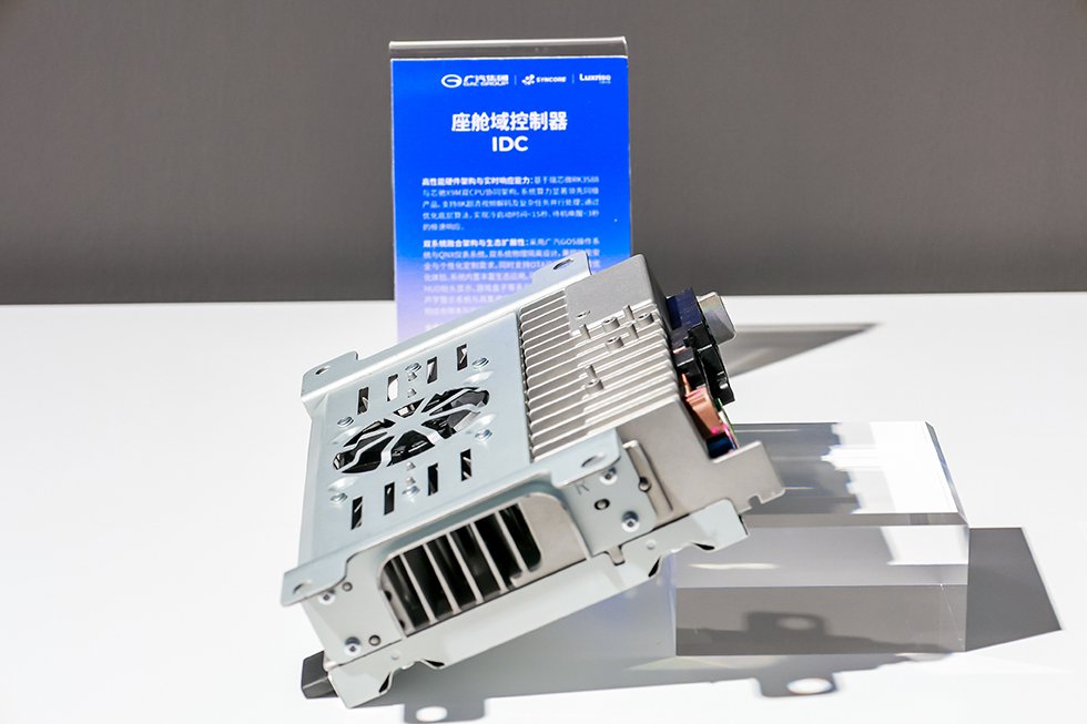 现场,广汽展出了双方合作的座舱域控制器IDC,采用瑞芯微RK3588M智能座舱旗舰芯片,高性能硬件架构与实时响应能力,配备6TOPS系统AI算力,支持8K超清视频解码及复杂任务并行处理,可实现冷启动时间<15秒,待机唤醒<3秒的极速响应。